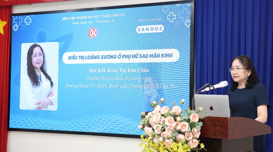 Phát biểu khai mạc, PGS.TS.BS. Nguyễn Thành Tấn nhấn mạnh ý nghĩa của hoạt động truyền thông giáo dục sức khỏe nhằm nâng cao nhận thức và tăng cường gắn kết giữa nhân viên y tế – người bệnh – cộng đồng. Trong phần trình bày, các diễn giả đã cung cấp thông tin tổng quan về bệnh loãng xương, tầm soát phát hiện sớm và các phương pháp điều trị toàn diện. Chương trình cũng cập nhật khuyến cáo đo mật độ xương (DEXA) – phương pháp có độ chính xác cao đang được triển khai tại Bệnh viện Trường Đại học Y Dược Cần Thơ.