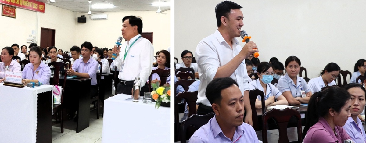 PGS. TS. DS Phạm Thành Suôl – Trưởng khoa Dược và KS. Mai Quốc Trường – Trưởng Phòng Công nghệ thông tin Bệnh viện Trường đặt câu hỏi thảo luận