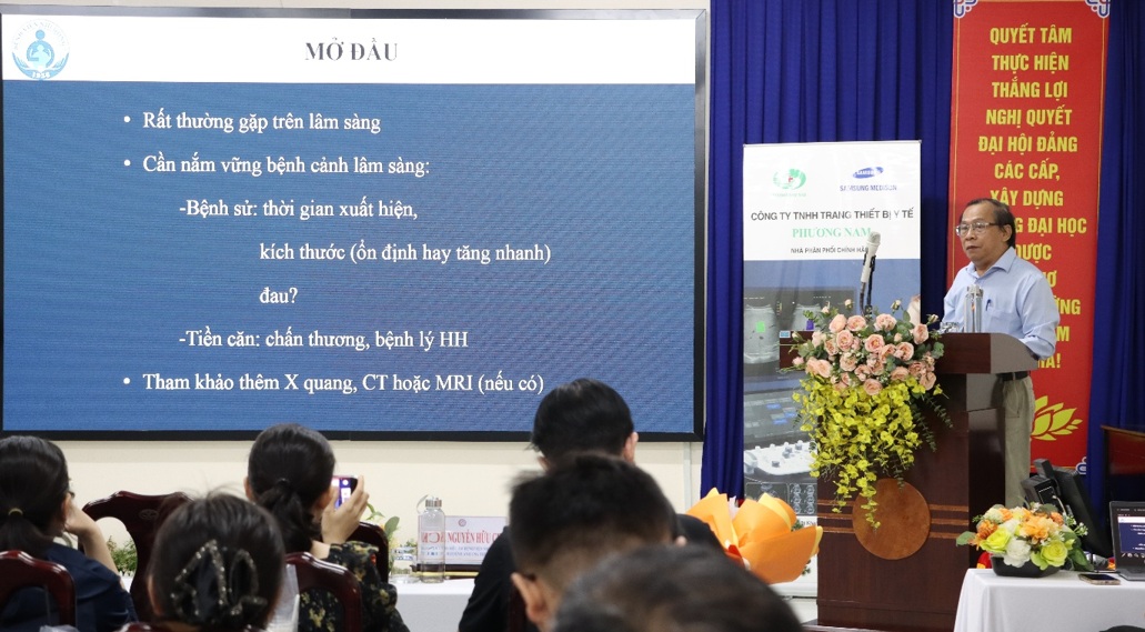 Tại hội thảo, báo cáo viên đã trình bày chuyên đề chuyên sâu liên quan đến bệnh lý viêm nhiễm mô mềm, khối u mô mềm, bất thường mạch máu, cũng như các bệnh lý mô mềm thường gặp ở trẻ em, kết hợp với trao đổi kinh nghiệm thực tiễn trong chẩn đoán và điều trị.