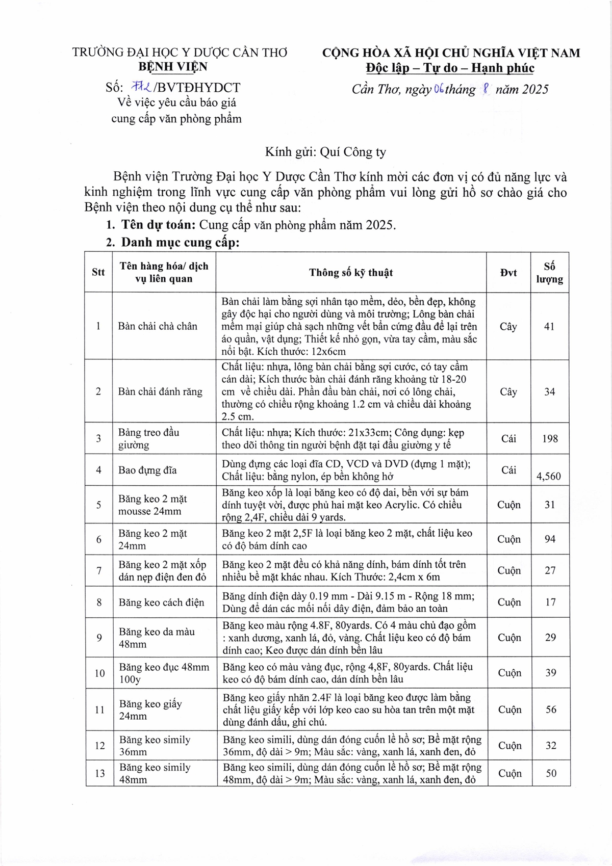 Yêu cầu báo giá cung cấp văn phòng phẩm
