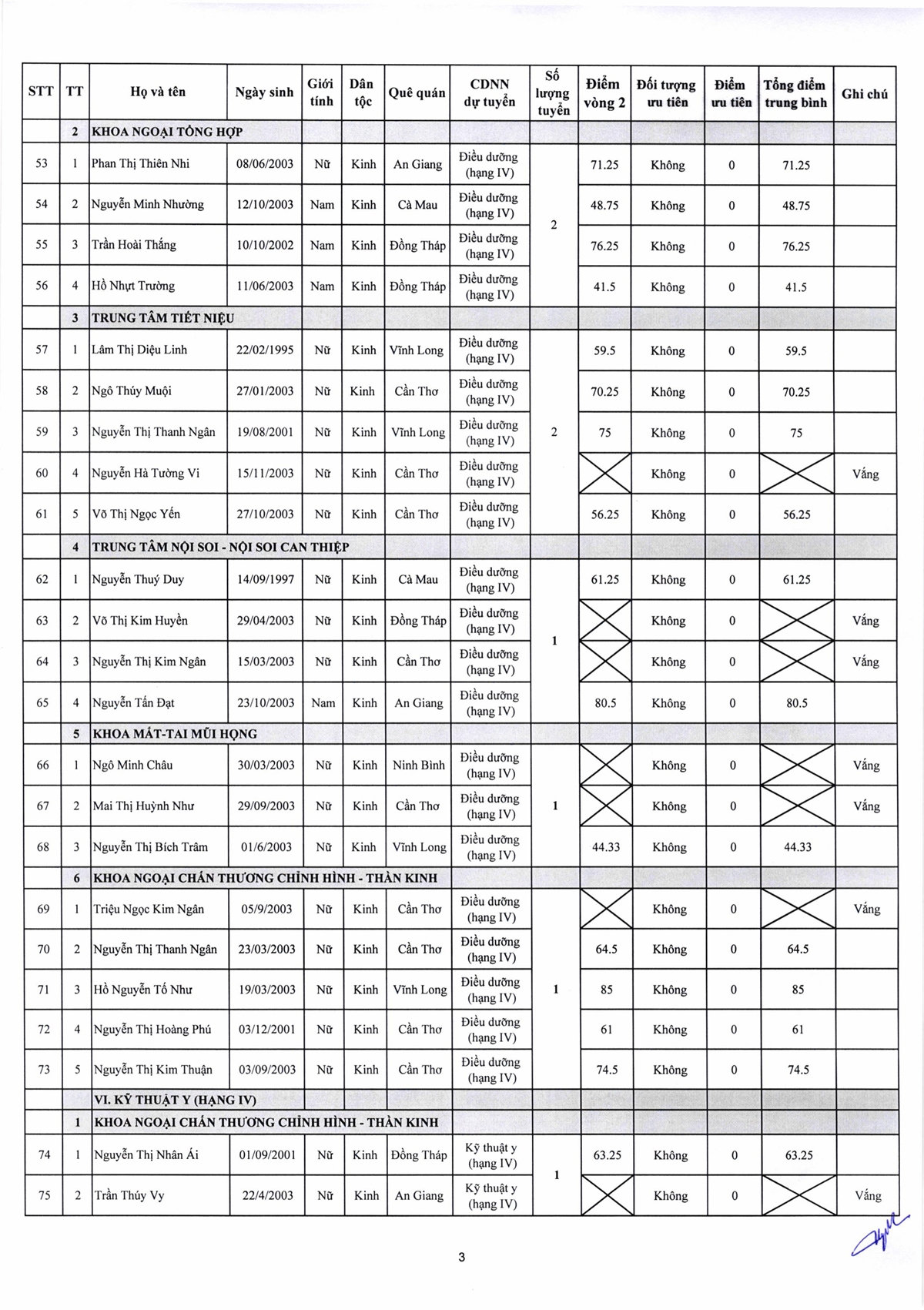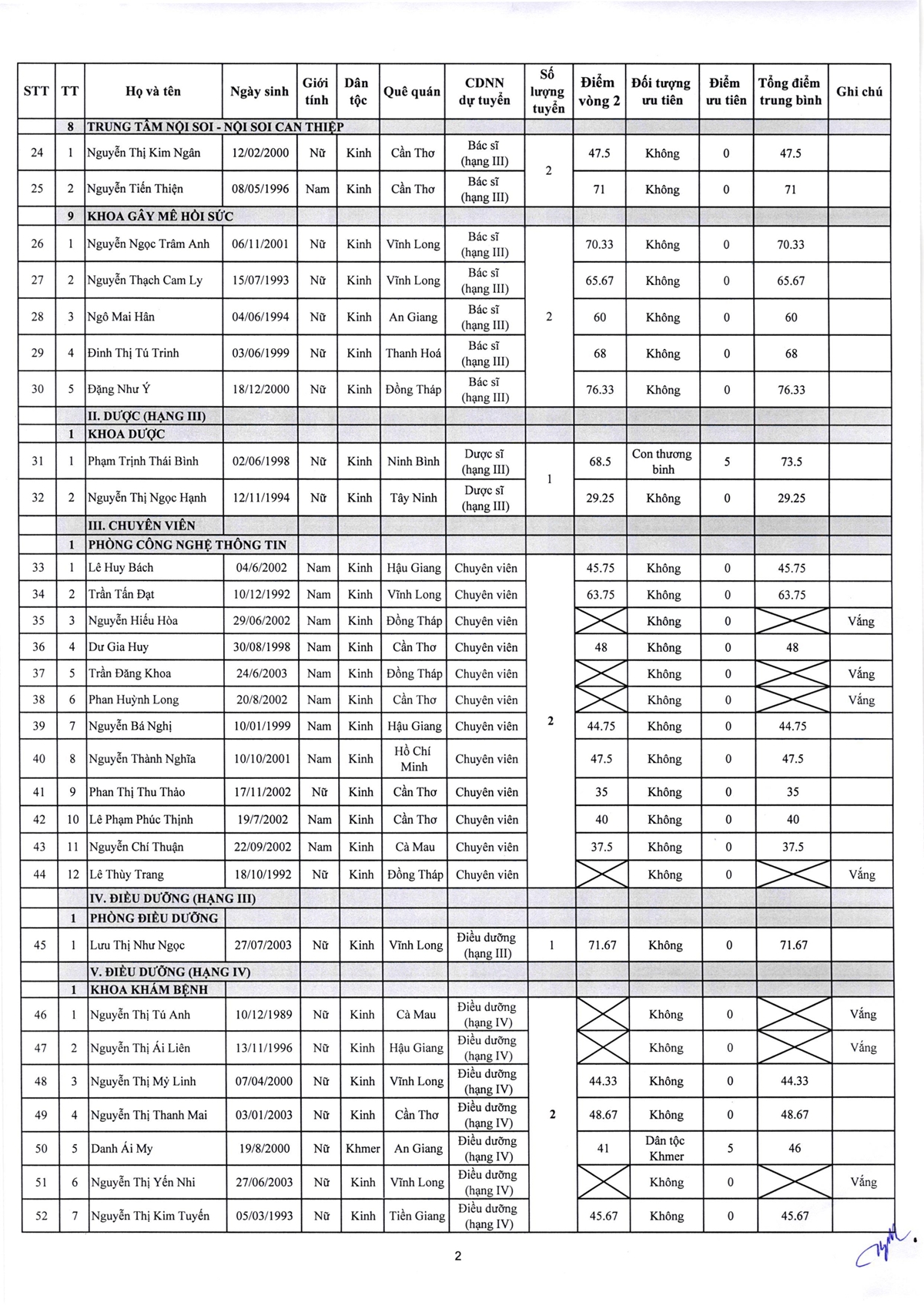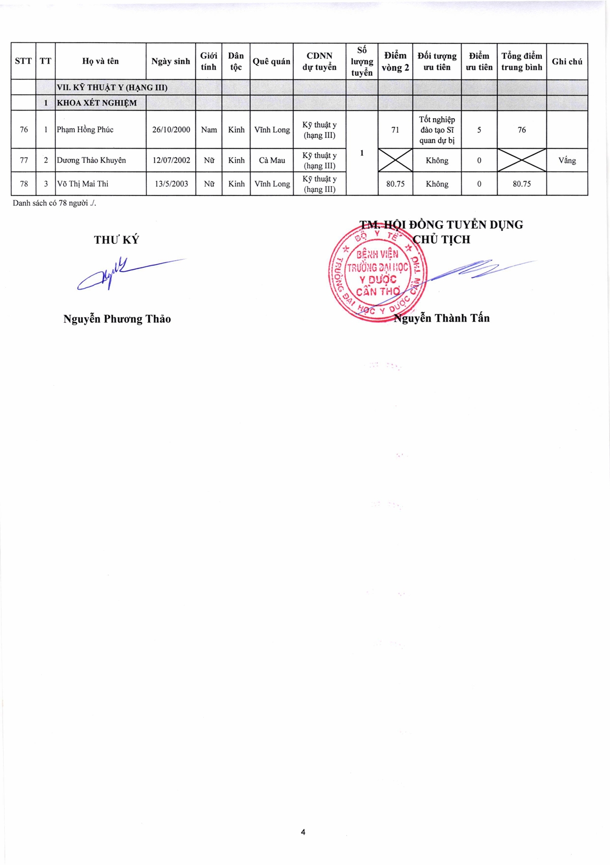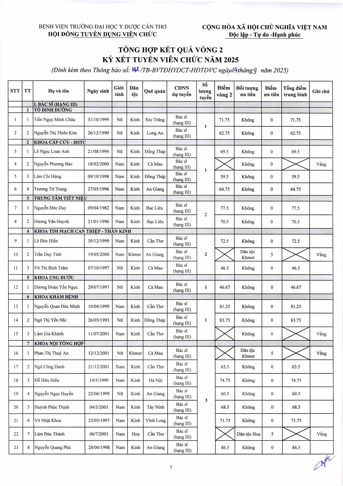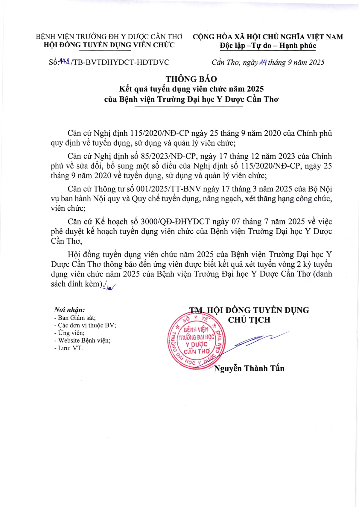 Thông báo số 142 về Kết quả tuyển viên chức năm 2025 của Bệnh viện Trường Đại học Y Dược Cần Thơ