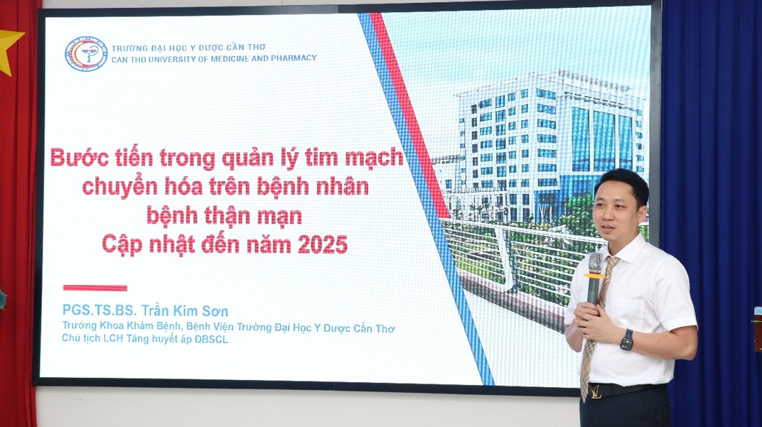 PGS.TS.BS Trần Kim Sơn, Trưởng Khoa Khám bệnh Bệnh viện Trường Đại học Y Dược Cần Thơ chia sẻ nội dung “ Bước tiến trong quản lý tim mạch chuyển hóa trên bệnh nhân bệnh thận mạn - Cập nhật đến 2025”