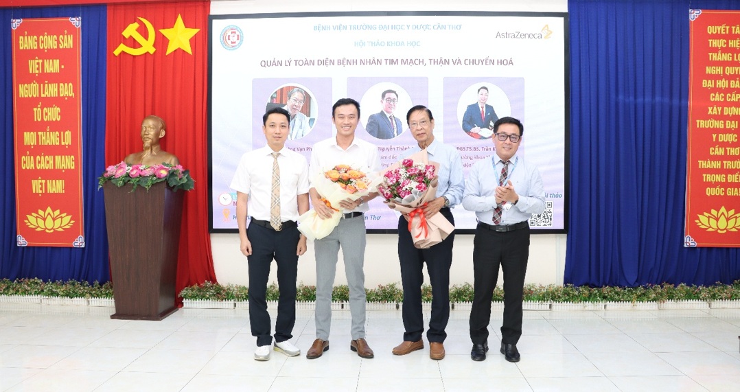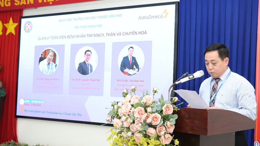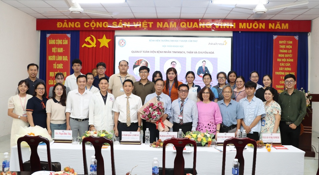 Bệnh tim mạch, thận và chuyển hóa là những bệnh lý không lây và có xu hướng ngày càng gia tăng phức tạp. Ngày 24/9/2025 tại Hội trường giao ban, Bệnh viện Trường Đại học Y Dược Cần Thơ phối hợp cùng Công ty Astrazeneca đã tổ chức thành công hội thảo khoa học "Quản lý toàn diện bệnh nhân tim mạch, thận và chuyển hoá" với sự chủ trì của PGS.TS.BS Nguyễn Thành Tấn – Giám đốc Bệnh viện Trường Đại học y dược Cần Thơ cùng sự tham dự của khoảng 60 đại biểu là các y bác sĩ, học viên, sinh viên với các bài báo cáo vô cùng ý nghĩa và bổ ích đến từ các chuyên gia đầu ngành.