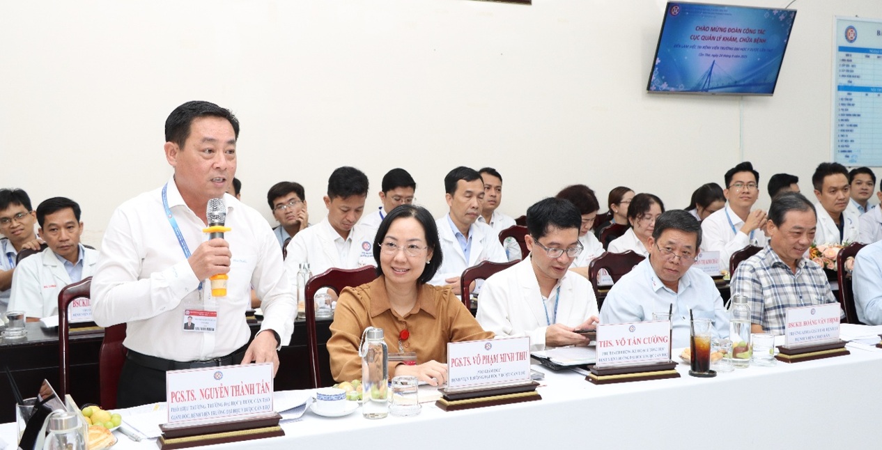 Phát biểu tại buổi làm việc, PGS.TS.BS Nguyễn Thành Tấn – Giám đốc Bệnh viện cho biết: “Việc được phê duyệt danh mục kỹ thuật mở rộng và đặc biệt là các kỹ thuật chuyên sâu không chỉ giúp bệnh viện nâng cao năng lực khám chữa bệnh mà còn góp phần phục vụ tốt hơn nhu cầu chăm sóc sức khỏe nhân dân khu vực Đồng bằng sông Cửu Long. Đồng thời phục vụ công tác đào tạo, nghiên cứu khoa học cho Trường ĐHYD Cần Thơ và Bệnh viện. Đây cũng là tiền đề quan trọng để bệnh viện hướng tới mục tiêu trở thành bệnh viện chuyên sâu kỹ thuật cao ngay sau khi bệnh viện mới đi vào hoạt động với quy mô 1000 giường bệnh.”