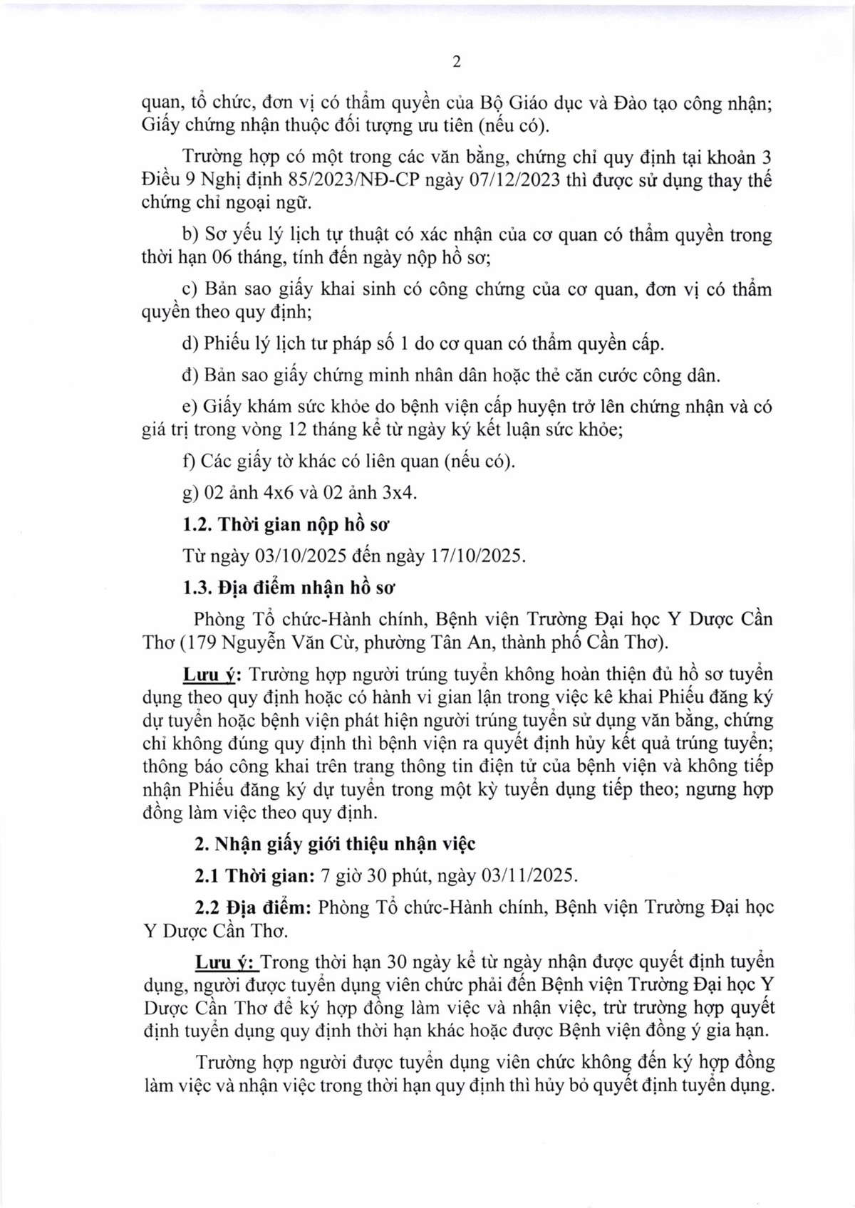 Thông báo số 129 triệu tập ứng viên đủ điều kiện dự tuyển vòng 2 kỳ xét tuyển viên chức năm 2025 của Bệnh viện Trường Đại học Y Dược Cần Thơ