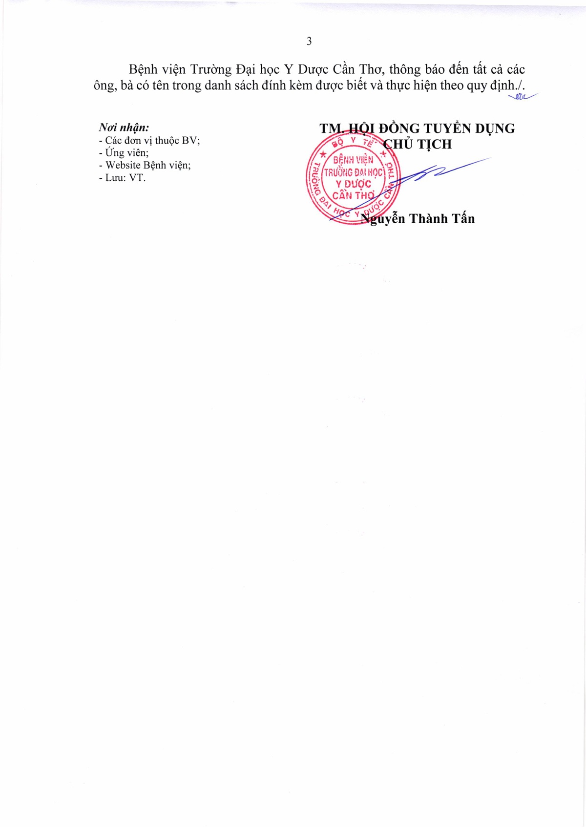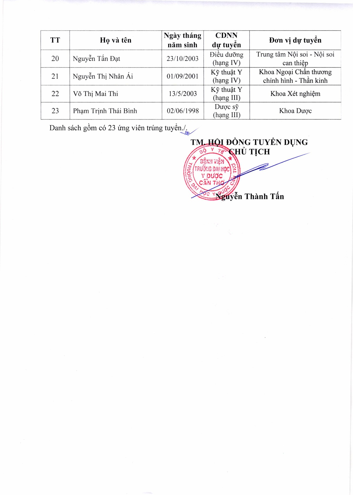 Thông báo số 124 danh sách ứng viên đủ điều kiện và không đủ điều kiện dự tuyển vòng 2 kỳ xét tuyển viên chức năm 2025 của Bệnh viện Trường Đại học Y Dược Cần Thơ
