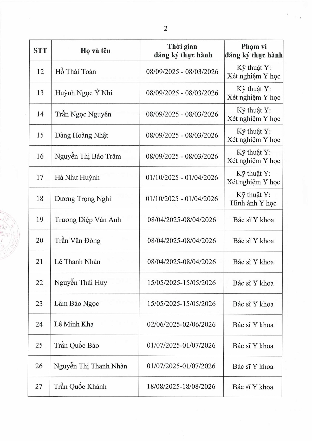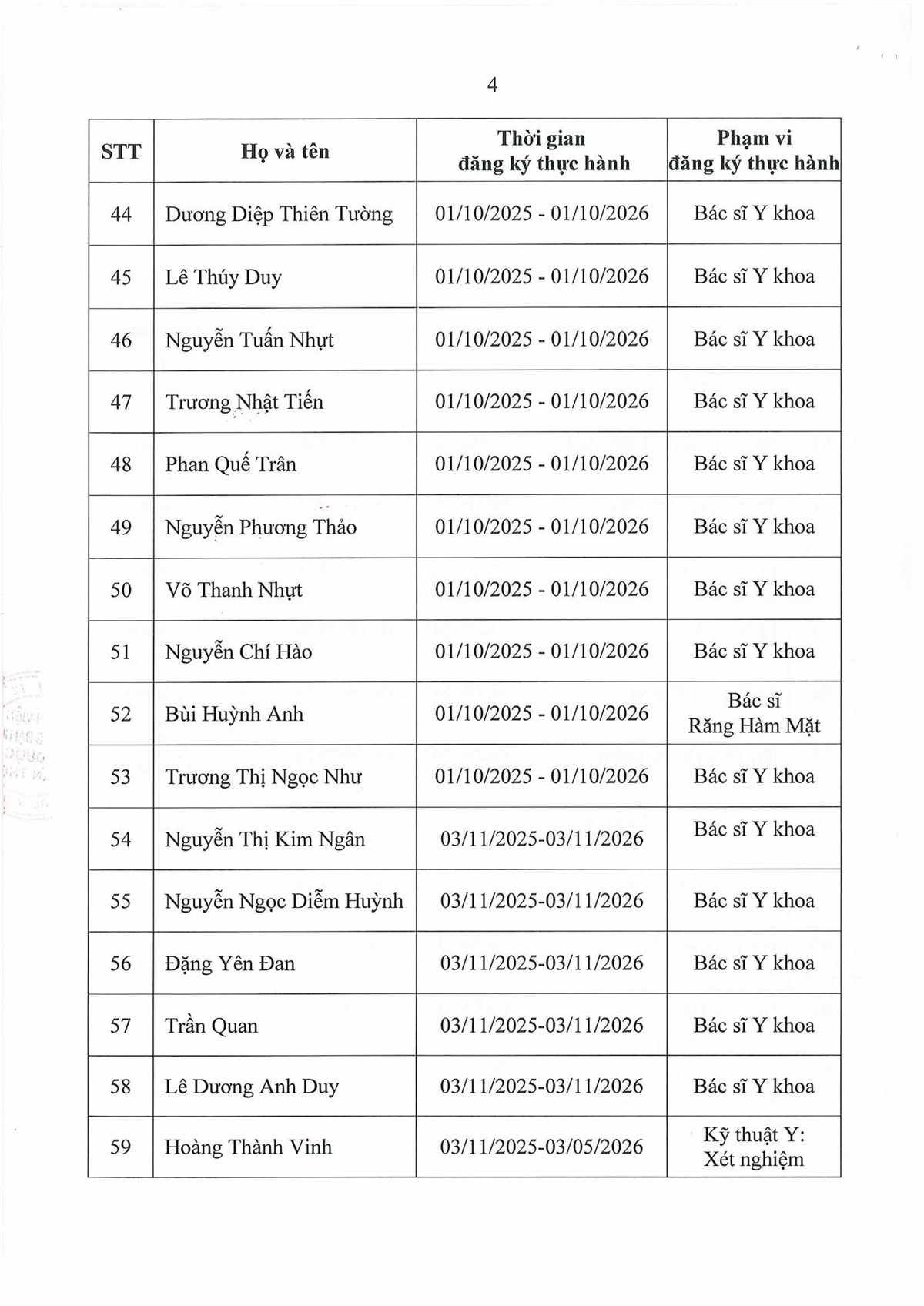 Danh sách người thực hành khám bệnh, chữa bệnh, cập nhật đến ngày 10/9/2025