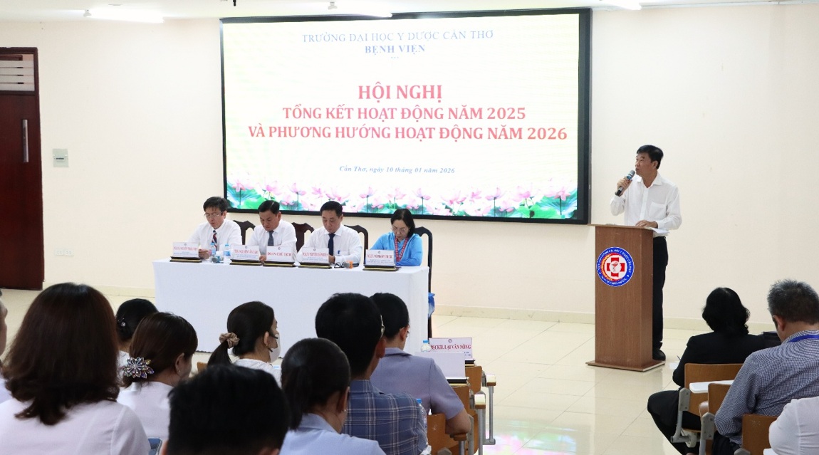 Ngày 10/01/2026, Bệnh viện Trường Đại học Y Dược Cần Thơ đã tổ chức Hội nghị tổng kết hoạt động năm 2025 và phương hướng hoạt động năm 2026. Đây là sự kiện quan trọng nhằm đánh giá toàn diện kết quả đã đạt được, tồn tại trong năm qua từ đó xác định mục tiêu, nhiệm vụ và giải pháp trọng tâm cho năm tới.