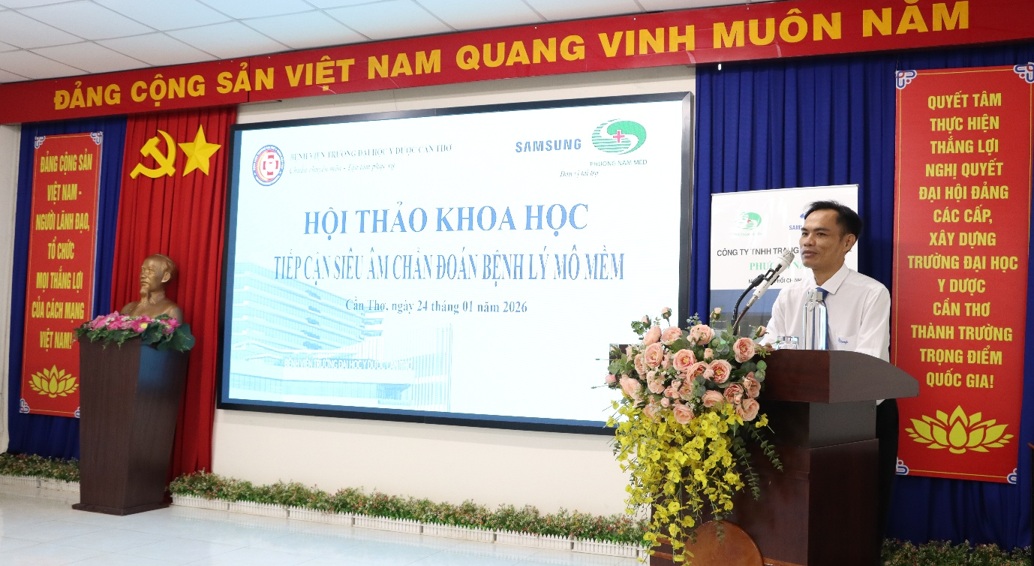 Sáng ngày 24 tháng 01 năm 2026, tại Bệnh viện Trường Đại học Y Dược Cần Thơ đã diễn ra Hội thảo tập huấn cập nhật kiến thức y khoa với chủ đề “Tiếp cận siêu âm chẩn đoán bệnh lý mô mềm”. Đồng hành cùng chương trình có sự hỗ trợ của Công ty TNHH Trang Thiết bị Y tế Phương Nam.