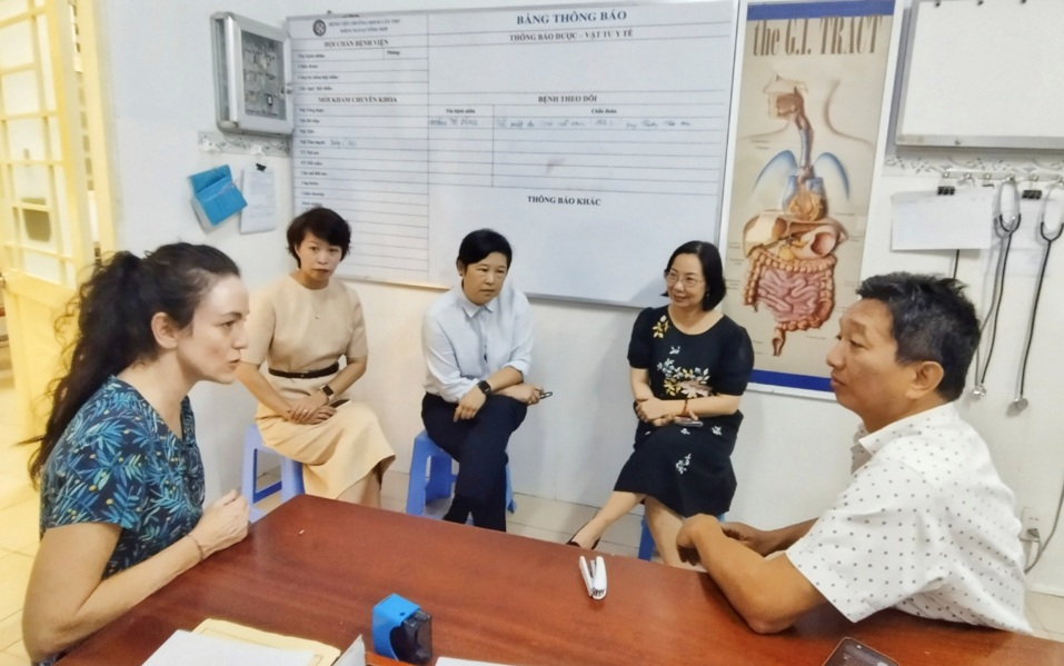 PGS.TS.BS. Võ Phạm Minh Thư - Phó Giám đốc Bệnh viện Trường Đại học Y Dược Cần Thơ thảo luận về việc triển khai các hoạt động hợp tác tiếp theo
