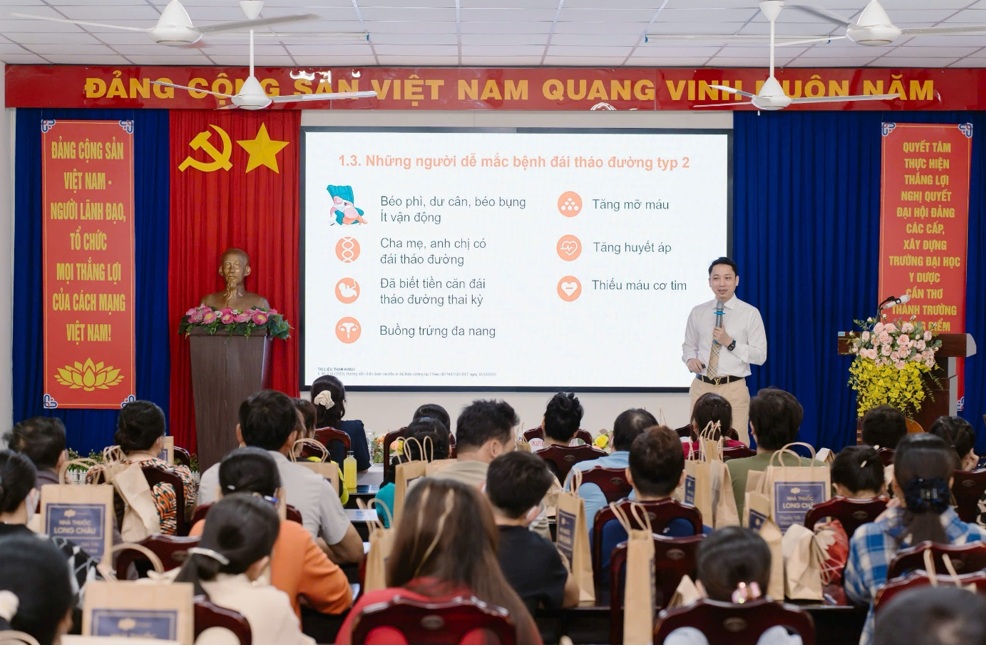 Ngày 26/9/2025 tại Hội trường giao ban, Bệnh viện Trường Đại học Y Dược Cần Thơ phối hợp cùng Công ty Novartis và Hệ thống Nhà thuốc FPT Long Châu tổ chức buổi sinh hoạt giáo dục sức khỏe cộng đồng chủ đề “Sống khỏe cùng bệnh đái tháo đường và tim mạch” với sự chủ trì của PGS.TS.BS Nguyễn Thành Tấn – Giám đốc Bệnh viện Trường Đại học Y Dược Cần Thơ cùng sự góp mặt của hai chuyên gia đầu ngành: BS.CKII Trần Diệu Hiền, Trưởng khoa Nội Tim Mạch – Bệnh viện Đa khoa Trung ương Cần Thơ và PGS.TS.BS. Trần Kim Sơn, Trưởng khoa khám bệnh – Bệnh viện Trường Đại học Y Dược Cần Thơ.