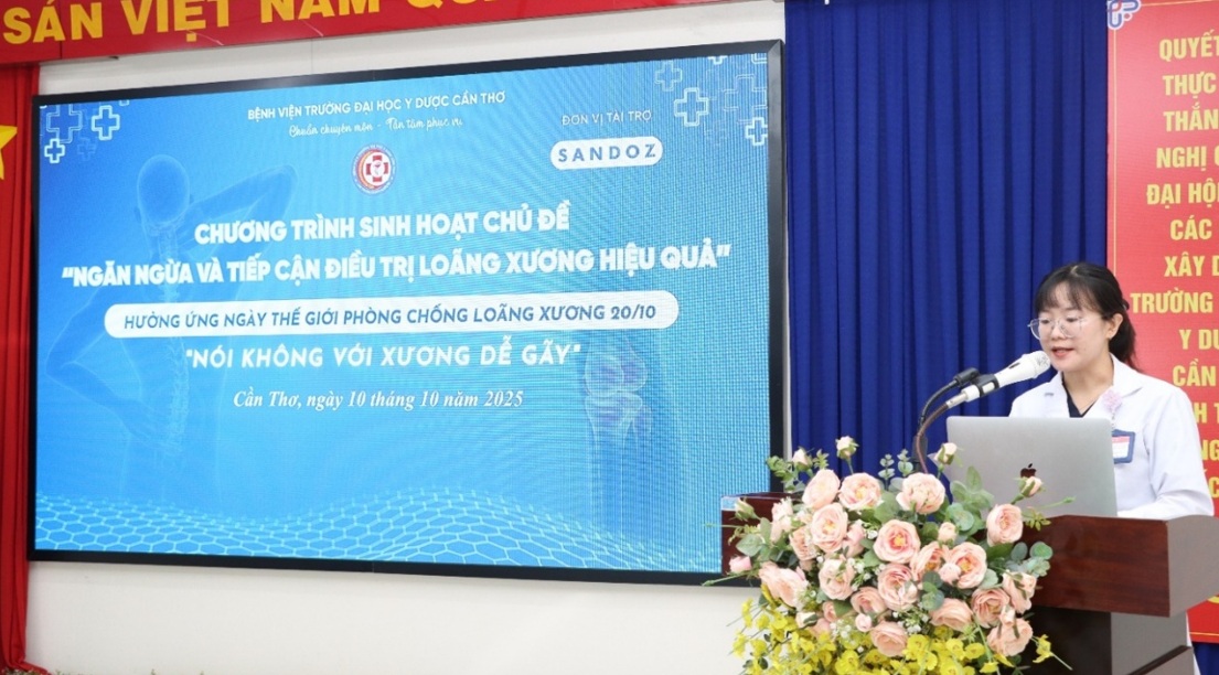 Nhằm hưởng ứng Ngày Thế giới Phòng chống Loãng xương (20/10/1996-20/10/2025), sáng ngày 10 tháng 10 năm 2025, Bệnh viện Trường Đại học Y Dược Cần Thơ tổ chức buổi sinh hoạt cộng đồng chủ đề “Ngăn ngừa và tiếp cận điều trị loãng xương hiệu quả” đến gần 100 người tham dự tại Hội trường Bệnh viện.