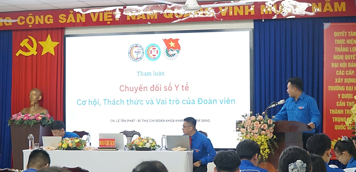 Đ/c Lê Tấn Phát-Bí thư Chi đoàn Khoa Khám-Cận lâm sàng tham luận chủ để