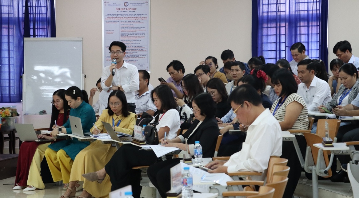 ThS. Lê Thanh Tâm – Phụ trách phòng QLCL&CTXH đóng góp ý kiến tại hội nghị