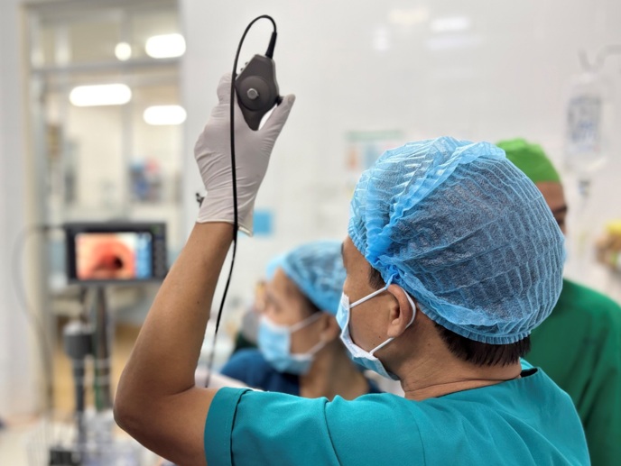 Kết quả: Thời gian phẫu thuật 80 phút, người bệnh được kiểm soát huyết động ổn định, tỉnh mê nhẹ nhàng, giảm khó thở, phục hồi nhanh và xuất viện an toàn.