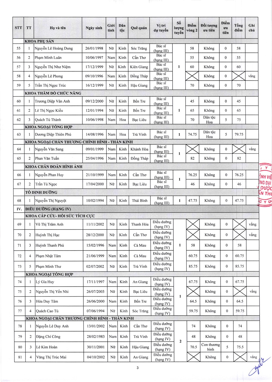 Thông báo số 193 Kết quả tuyển dụng viên chức đợt 2 năm 2024 của Bệnh viện Trường Đại học Y Dược Cần Thơ