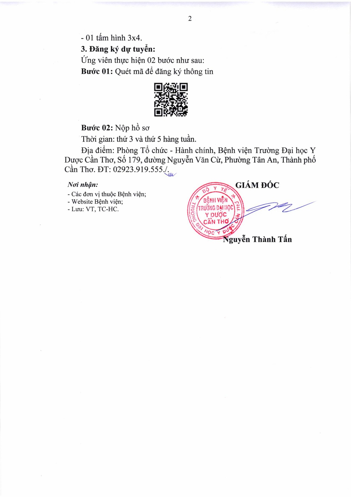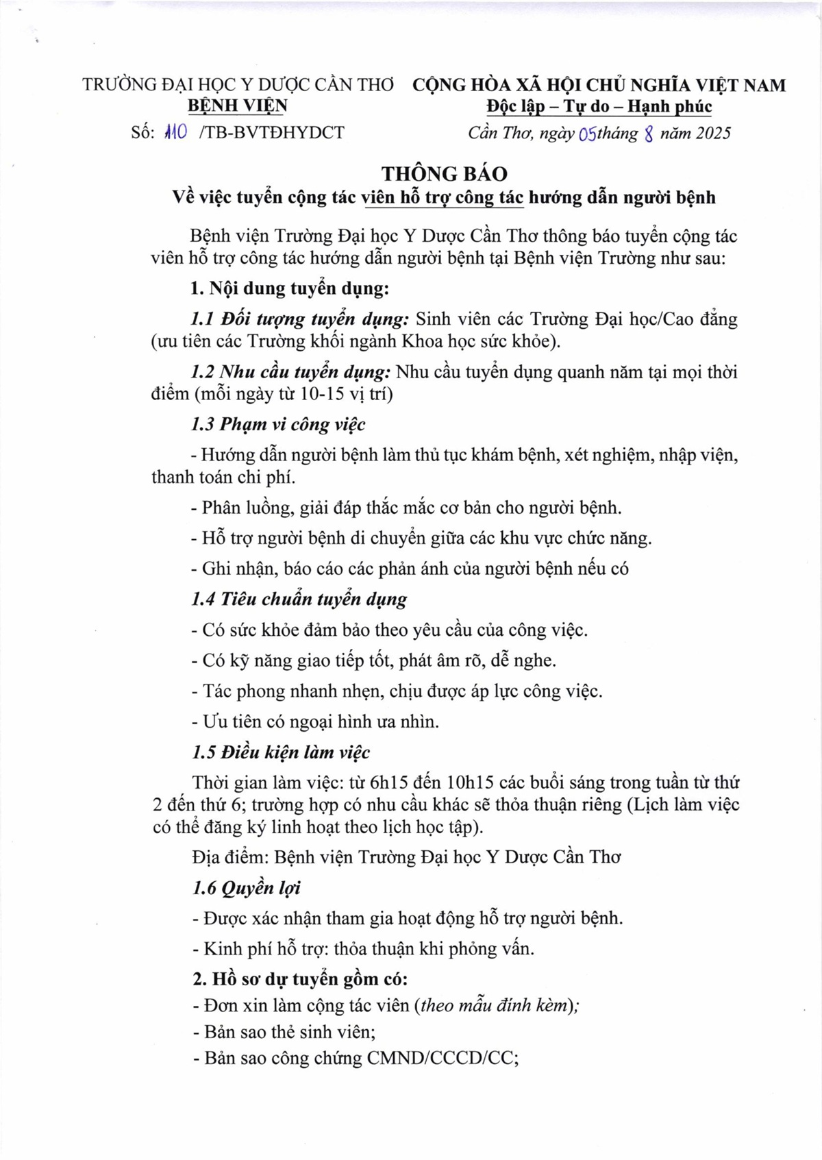 Thông báo số 110 tuyển cộng tác viên hỗ trợ công tác hướng dẫn người bệnh.
