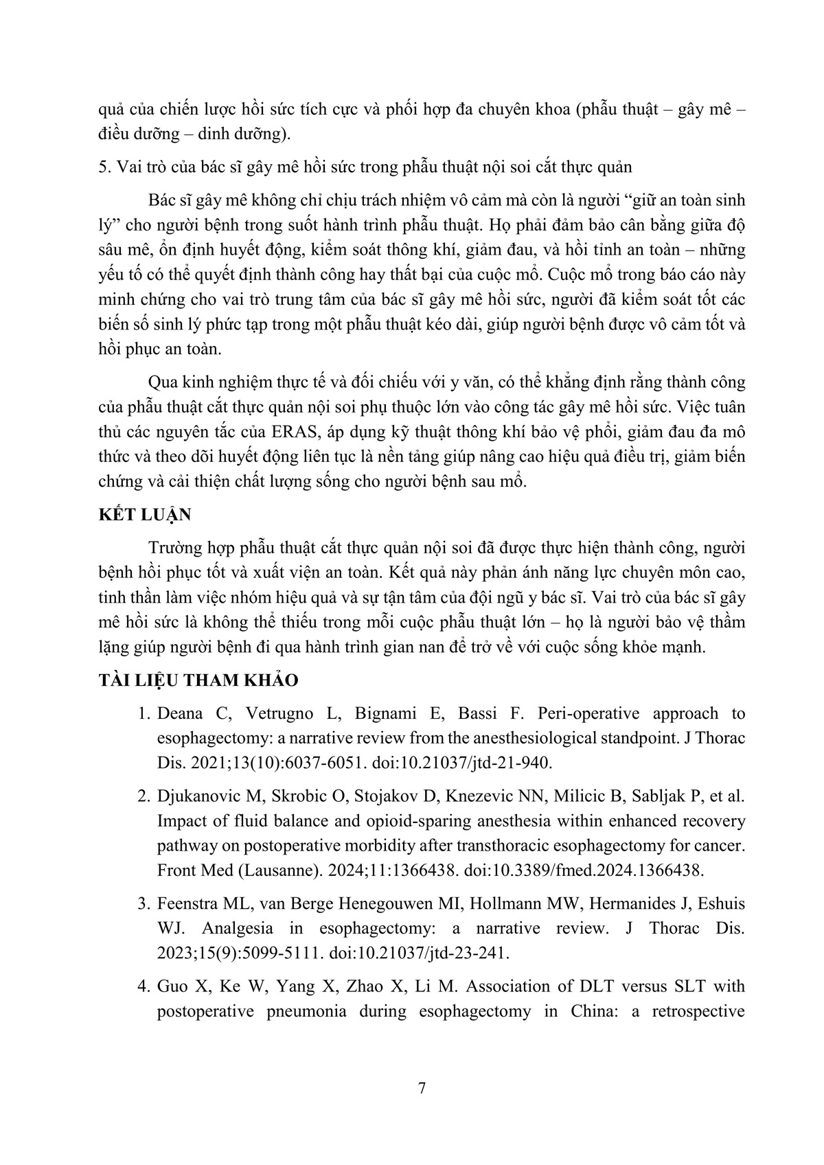 KINH NGHIỆM GÂY MÊ HỒI SỨC TRONG PHẪU THUẬT CẮT THỰC QUẢN, TẠO HÌNH BẰNG DẠ DÀY QUA NỘI SOI - MỘT THÁCH THỨC LỚN.