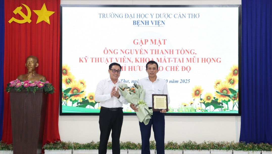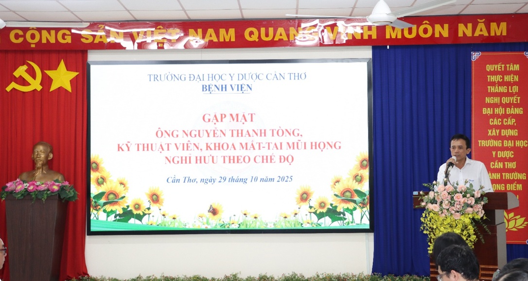 Ngày 29/10/2025, Bệnh viện Trường Đại học Y Dược Cần Thơ đã tổ chức buổi gặp mặt ông Nguyễn Thanh Tòng, Kỹ thuật viên, Khoa Mắt-Tai Mũi Họng nghỉ hưu để hưởng chế độ bảo hiểm xã hội kể từ ngày 01/11/2025.