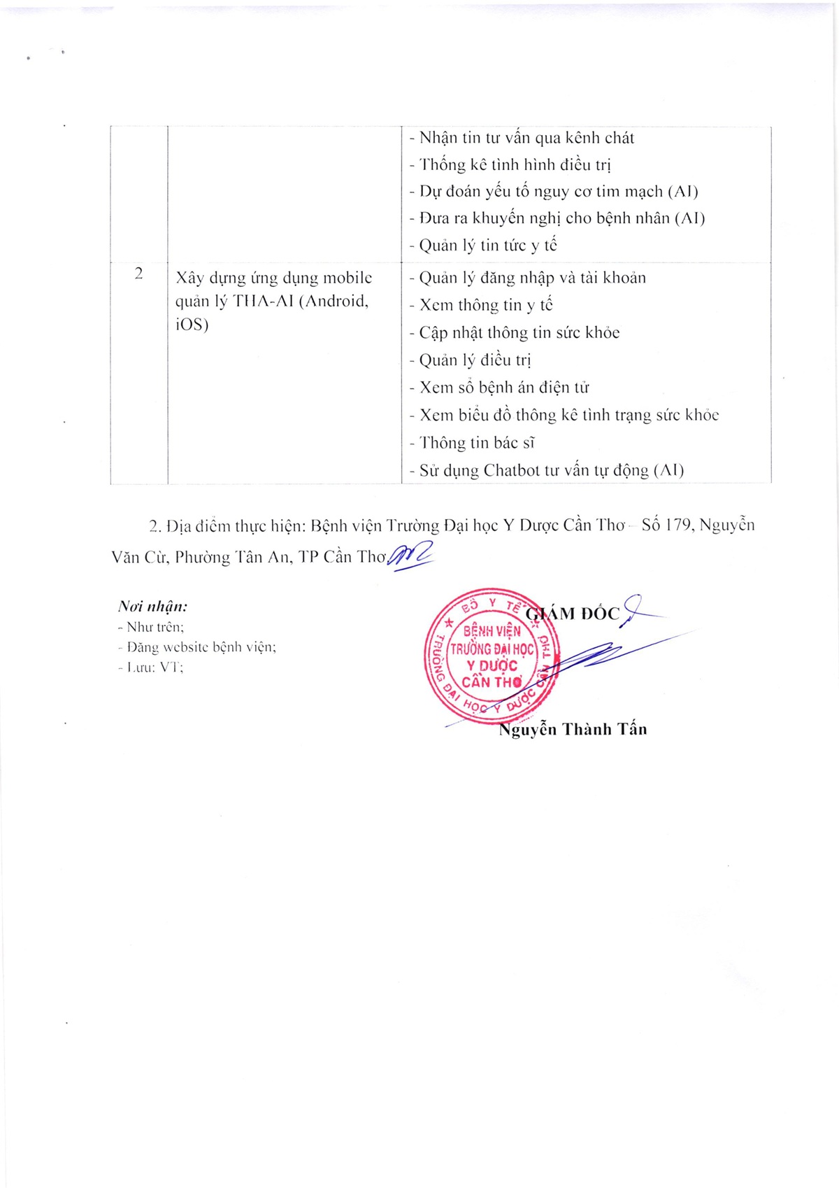 Thông báo: về việc mời chào giá Phần mềm hệ thống quản lý tăng huyết áp bằng trí tuệ nhân tạo