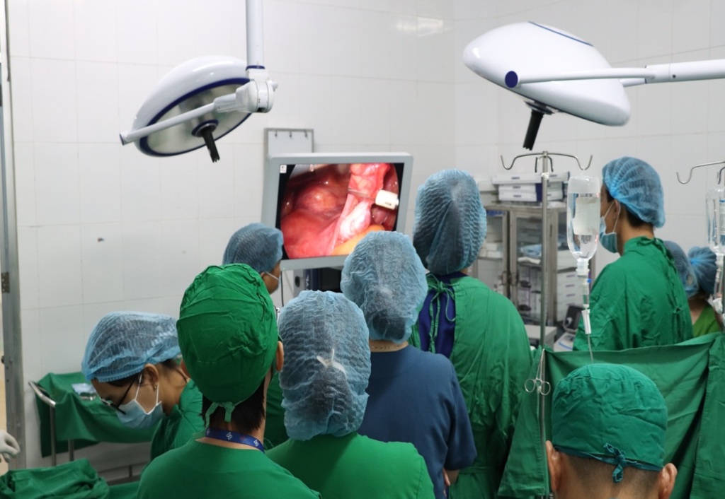 Ca mổ thị phạm được thực hiện với sự tham gia của BS.CKII Nguyễn Văn Hưng, TS.BS Trần Khánh Nga, BS.CKII Ngũ Quốc Vĩ cùng ê-kíp