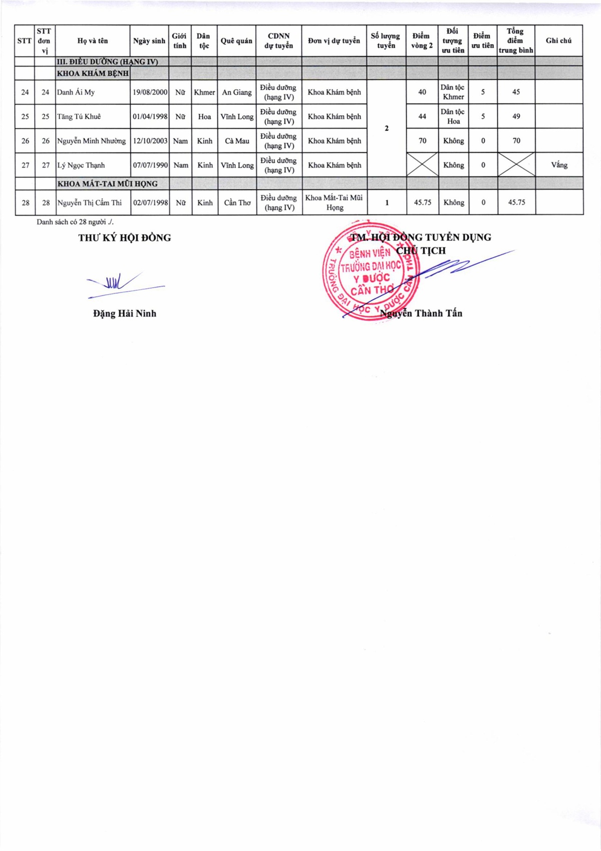 Thông báo số 01 Kết quả tuyển dụng viên chức đợt 2 năm 2025 của Bệnh viện Trường Đại học Y Dược Cần Thơ