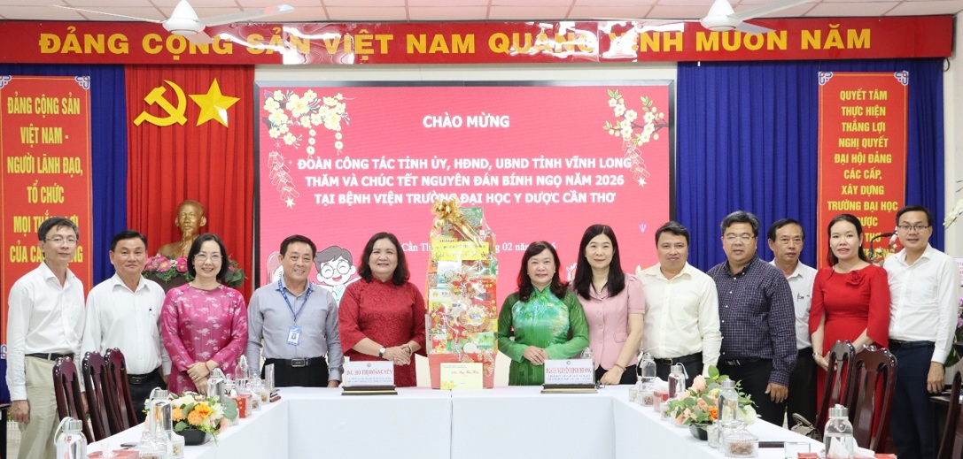 Chiều ngày 10/02/2026, Bệnh viện Trường Đại học Y Dược Cần Thơ rất vinh dự được đón tiếp Đoàn công tác Tỉnh ủy Vĩnh Long do đồng chí Hồ Thị Hoàng Yến, Ủy viên Ban Chấp hành Trung ương Đảng, Phó Bí thư Thường trực Tỉnh ủy làm Trưởng đoàn, cùng các đồng chí là đại diện Hội đồng nhân dân, Ủy ban nhân dân và các sở, ban, ngành của tỉnh đến thăm và chúc Tết Nguyên đán Bính Ngọ năm 2026 tại Bệnh viện.