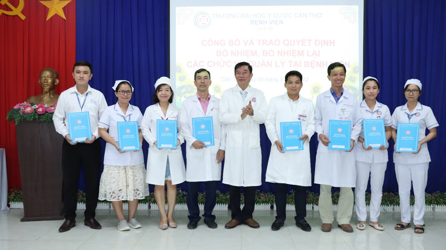 Ngày 05/9/2022 Bệnh viện Trường Đại học Y Dược Cần Thơ đã tổ chức “Lễ công bố và trao quyết định bổ nhiệm, bổ nhiệm lại cán bộ quản lý”. Đến tham dự buổi lễ có sự hiện diện của PGS.TS. Nguyễn Minh Phương - Bí thư Đảng uỷ, Chủ tịch Hội đồng Trường; TS. BS. Nguyễn Thành Tấn - Phó Hiệu trưởng, Phó Giám đốc Bệnh viện và BS.CKII. Lại Văn Nông - Uỷ viên Ban thường vụ Đảng uỷ, Giám đốc Bệnh viện; PGS. TS. Phạm Văn Năng - Phó Giám đốc Bệnh viện và ThS. Nguyễn Văn Tám - Uỷ viên Ban thường vụ Đảng uỷ, Phó Giám đốc Bệnh viện. Cùng với sự có mặt của lãnh đạo các Khoa, Phòng, Trung tâm thuộc Bệnh viện; đại diện các tổ chức đoàn thể và các viên chức được bổ nhiệm.